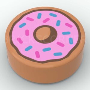 LEGO® Tuile Ronde Décorée 1 x 1 Motif Beignet / Donut – 98138pb182 – Nougat Moyen