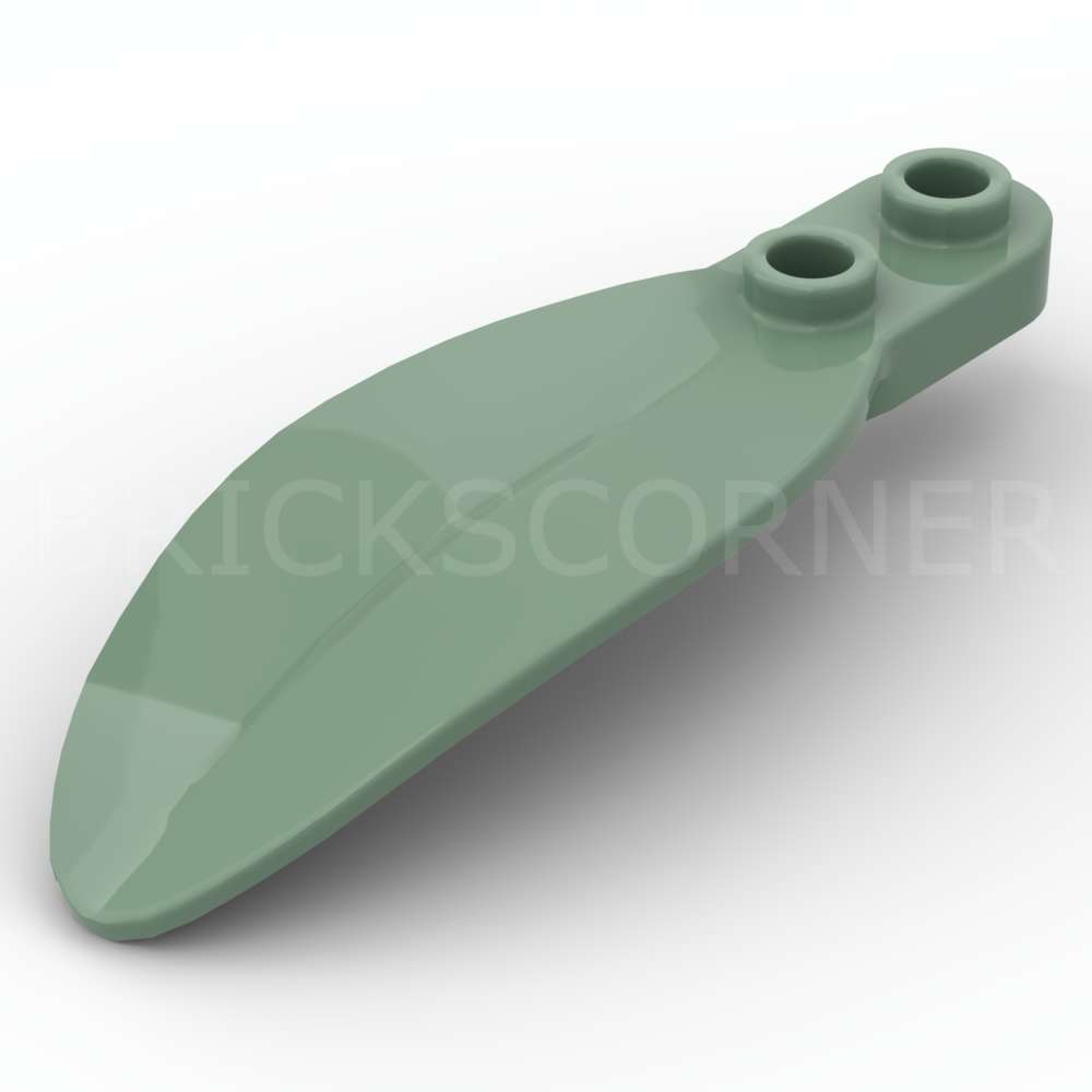 Cette grande feuille d’arbre tropical sur une plaque ronde 1 x 2 est entrée au catalogue LEGO® en 2023, elle est parfaite pour représenter des palmiers ou des arbres dans vos univers fantastiques mais peut aussi être utilisée pour représenter des plumes sur des créations d’oiseaux.