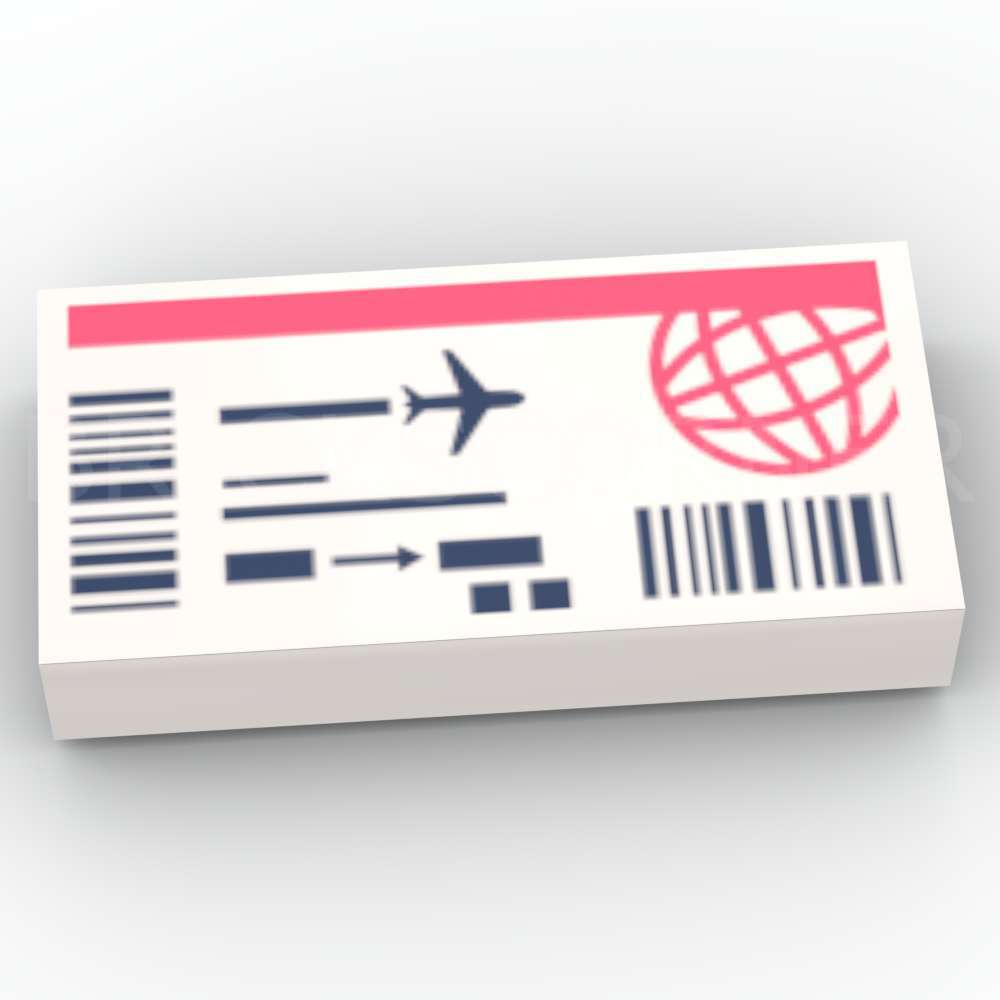 | Dénomination Element LEGO® | Tile 1 x 2 with Airline Ticket with Coral Wire Frame Globe and Stripe Black Barcodes Lines Arrow and Airplane Pattern |